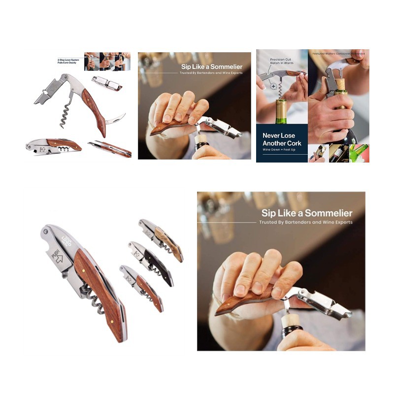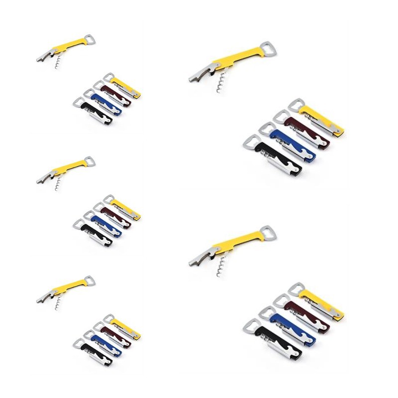 Come and Check Our Branding Solutions.The professional 3 in 1 multi function wine opener, stainless steel body and handle, will last for years. It could be used as a double hinged corkscrew, a foil cutter knife and a bottle cap opener. You'll be able to remove both natural and synthetic corks in seconds with this premium stainless steel wine corkscrew screw pull.Enjoy the process of opening a bottle of wine in a traditional way.The best companion of red wine.Your logo is welcome. Pls check inventory