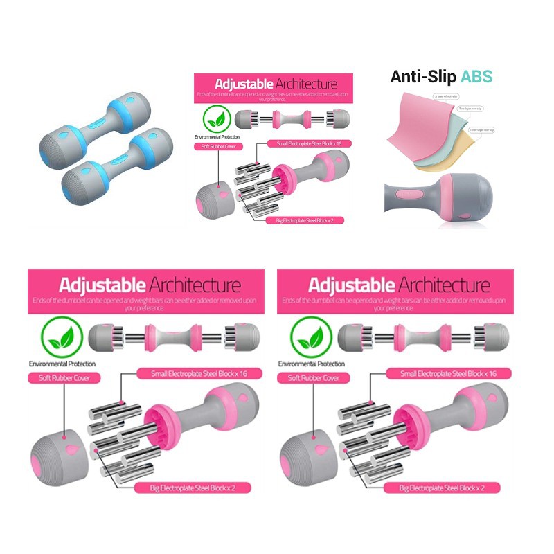 This adjustable dumbbell set can be adjusted from 2.2 to 4.4 pounds. In addition, we have 4 free foam blocks, which can effectively prevent shocks, even if there are children sleeping.