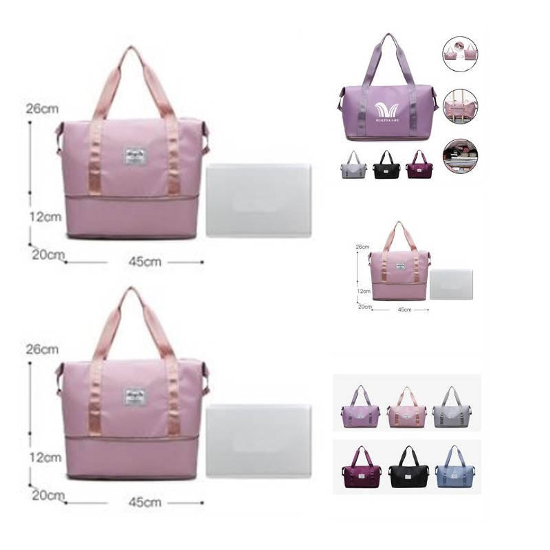 Our yoga gym bag features one front pockets, a large main compartment, wet dry pocket, shoe storage, and more; Which all to keep your personal items be neatly organized. Sports bag comes with shoes compartment to store in on the side of the fitness bag where got zip and venting hole with it, sneakers are easy to put in the bag without bad odor, very suitable for the gym. And the wet pocket help you to separate dry items and wet clothes towel Pls confirm with us about