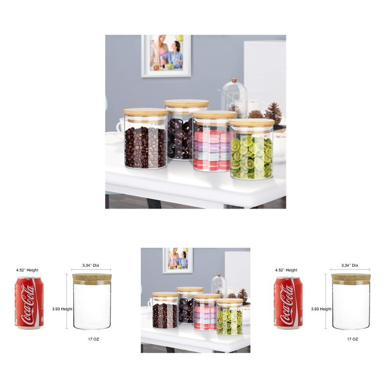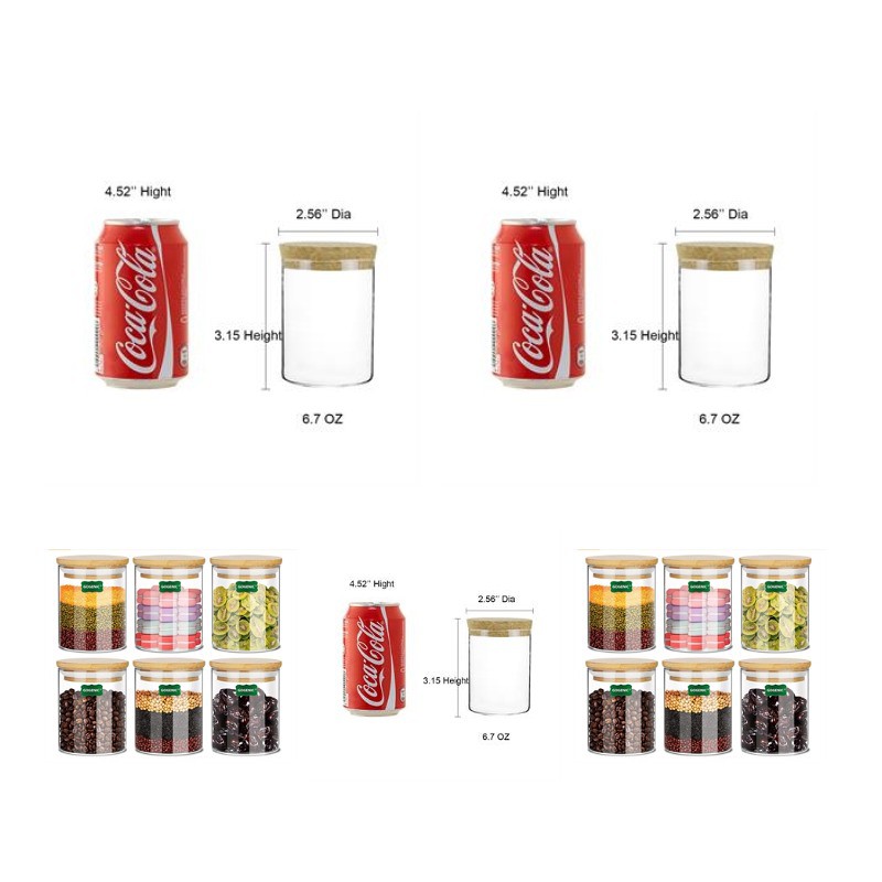 Come and see our amazing products. Glass Storage Jar include SIX 4.73'' X 2.56'', glass jars with lids. Perfect for storing and preserving a variety of ingredients including sugar, flour, tea, coffee, herbs, spices, biscuits, etc. A good glass storage jars should be airtight and keep food fresh and dry for longer, that is what we pursued. Our glass jars are thicker, with a silicone ring all-around the bamboo lid, create an airtight and moisture-proof environment, you can feel the pressure when you close or open the lid. Pls confirm with us about