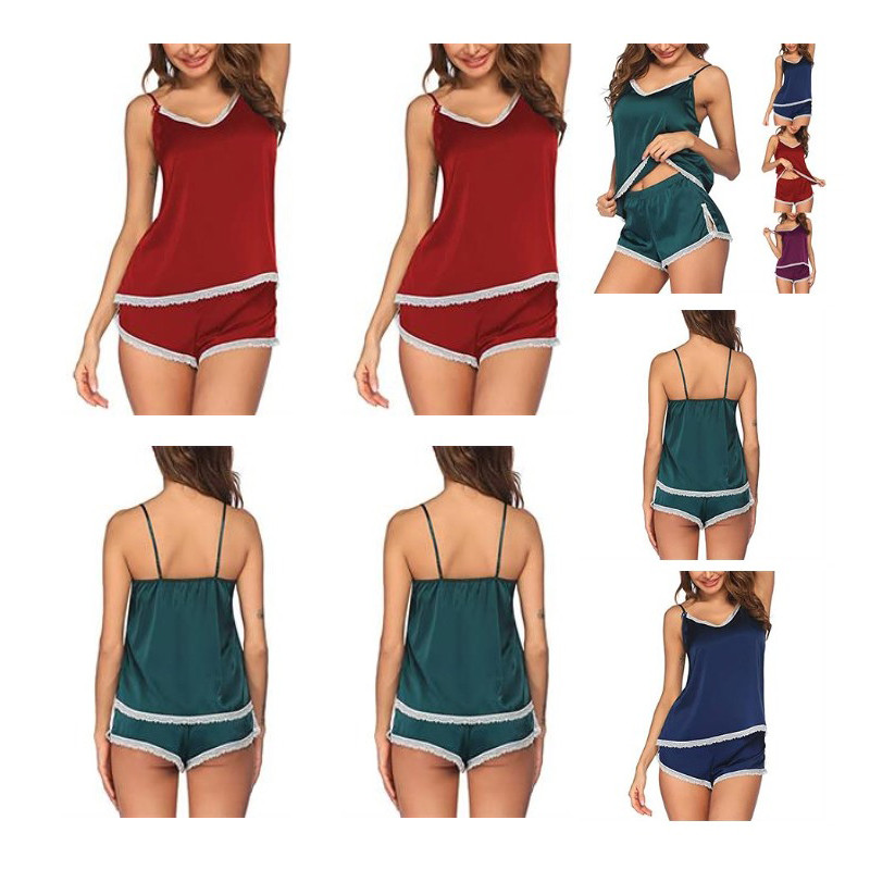 Come and Check Our Branding Solutions.This pajama made of 97% Polyester,3% Spandex,Soft fabric,has no stretch,Pull On closure,7 pieces included:a cami,a shirt,a pair of shorts,a pair of pants,a hair tie,a bag and eye mask and a hair band,Satin cami pajama set with long sleeve button down shirt loungewear,Cami top and shorts pajama set,cami and pants nightwear,button up pajamas,Premium silk-like satin pajama set for everyday use,Many designs Tropical,Floral,Animal Fruits,etc.You will find your favourite types here.We are a certified factory,accept your customized logo,which will be made on the cloth label. Pls check inventory and detailed info before placing your orders.
