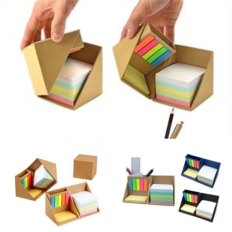 Come and see our amazing products. This folding memo pad organizer comes in a compact cube design. It unfolds to reveal a pen/pencil holder,a 3.35"" x 3.35"" adhesive note pad and 0.5" x 1.8" adhesive flags in five colors. Accessory compartments. Memo pad includes 150 white sheets to jot down notes and reminders. Accessory compartments are perfect for holding push pins, paper clips and more. When the organizer is compacted into a cube, it measures 4.72" x 4.72". When in use and unfolded, it measures 16.34" x 4.1" x 4.1". Your price includes 1 color 1 logo imprint on the front top and shipping fee, and we welcome to custom box design.Price for over 2000pcs is for sea shipment. Pls confirm further with us if any query about packing info, inventory status and time schedule.