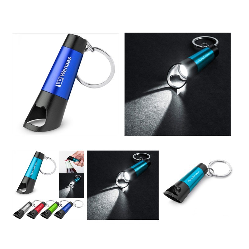 Come and Check Our Branding Solutions.This aluminum pocket-size flashlight with 3 LED lights, Sturdy bottle opener, Rubber tip push on/off button, Split ring swivel key chain, Powered by 3 LR44 button cell batteries, inserted. Pop the top off your next successful marketing campaign with an aluminum LED flashlight with a bottle opener Add an imprint of your company name or logo for maximum brand exposure Pls check inventory and detailed info before placing your orders.