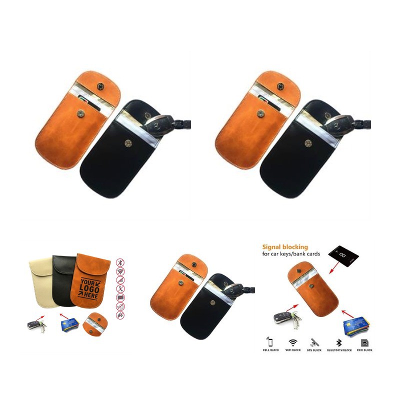 Come and Check Our Branding Solutions.Keep your car's security system from getting hacked. Protects your personal and financial data by blocking RFID scanners & readers from detecting your cards' RFID signals. Don't get hacked Hackers work hard to steal these things - protect yourself This bag is a must for the modern lifestyle.Made of 2 Layer Design: Velvet (inner layer) + PU leather (outer layer),SLIM, LIGHT.Inner glod layer blocks signals, outer PU leather on all sides with dual paired seam construction. inside layer for car key fob, outside layer for ID card / Bank cards. Shields keyfobs, WiFi cards, thumbdrives, and other small devices from ALL wireless signals. EMI shielding & RFI shielding, used for forensics, military, executive travel, personal security, and EMP protection. Pls check inventory and detailed info before placing your orders.