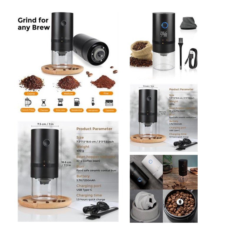 Come and see our amazing products. The electric grinder consistently crushes coffee beans between ceramic conical burrs. The hopper can grind up to 1 ounce/30 grams (enough for 4 cups) of coffee beans in a single batch.The fully automatic system allows for convenient, hands-free grinding. Put this cordless and USB rechargeable mini coffee grinder in your bag or suitcase, you can enjoy freshly ground coffee anytime, anywhere, whether at home, work, travel, hiking or camping.Customized is available. Pls confirm further with us if any query about packing info, inventory status and time schedule.