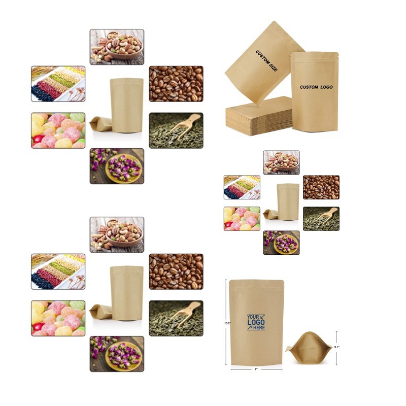 Kraft Paper Stand Up Storage Bags with Window, Zip Lock
