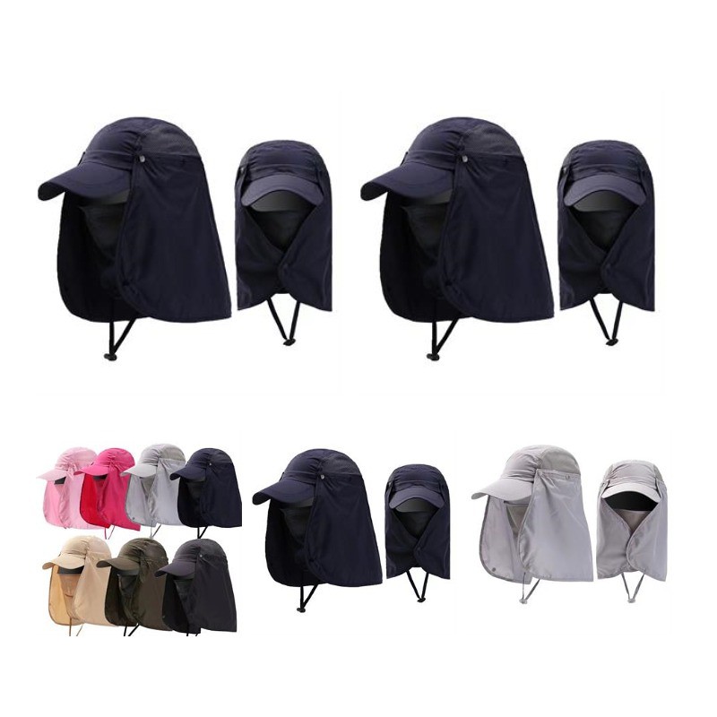 Come and see our amazing products. Our sun cap fishing hat with neck Visors, 360 degree sun protection. Lightweight, breathable nylon material for all-day wear, is great for all types of outdoor activities. Adjustable free size: the back of the hat for the elastic fast buckle, can adjust to fit your size. Removable Flap and Mask: the face flap, neck flap and top shade can be removed to use as a baseball cap , a visor, or a cap for golf. The mesh on the face cover enhances breathability. Great for these activities fishing, go to the sea, explore, hiking, camping, cycling, hunting, gardening, working and travel. Custom LOGO is available. Price for over 3000 is for sea shipment. Pls confirm further with us if any query about packing info, inventory status and time schedule.