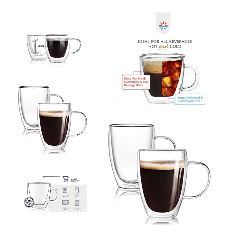 Come and see our amazing products. Insulated mug is 8 ounces each, whichis perfect for Coffee, espresso, or a multitude of other hot and cold beverages. The glasses are made of mouth-blown, lab-quality borosilicate-glass construction for a durable and heat resistant glass. Insulated glass has a sleek 2-layer design that creates a dramatic optical illusion and prevents condensation. You can quickly reheat your coffee in the microwave and toss in the dishwasher when you need a clean. It is also microwavable and dishwasher safe glass. If you need, we also have large size of cups. Pls confirm with us about the packing info, stock color and exact production time before placing your order.