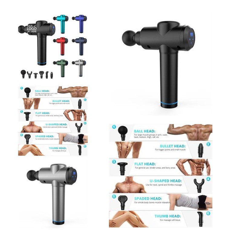 Come and Check Our Branding Solutions.Bounce back from overexertion at exercise, work or play with the help of this deep tissue massage gun. This 9.05" x 2.5" x 8.7" ABS plastic device uses multi-frequency vibration to fight stiffness and soreness, promote blood circulation and more. Includes four interchangeable heads to target all kinds of problem areas and works with whisper quiet action. Available in assorted colors. Add your school, sports team, organizational or company logo or message to customize a branded gift or giveaway for your next fitness-focused marketing activity or event. Pls check inventory