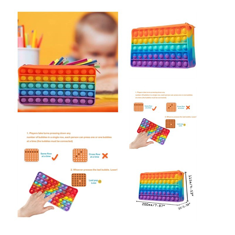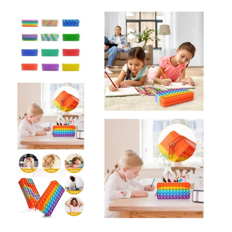 Come and Check Our Branding Solutions.Fidget Pencil Pen Case is made of high-quality silicone material, durable, flexible, tear-resistant, not easy to damage, reusable, kids can play freely. It can be used as a pencil case, storage bag, cosmetic brush bag, travel bag, stationery storage bag, accessory bag, wallet, etc., a multifunctional stationery storage box, which can be easily put into a backpack, office bag, and handbag. Add luster to your daily life. press the bubbles and they will make a slight pop sound, the perfect choice to relieve stress. It can be cleaned and is easy to carry. you can take it out to make time faster. It is great for on the go fun or stimulation and also helps to calm high-stress instances, making this simple, joyous fidget toy pack perfect for use at school, the park, anywhere. Pls check inventory