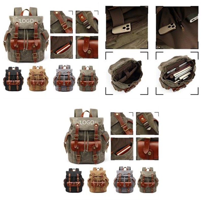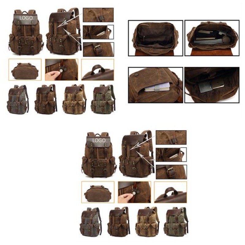 Come and see our amazing products. This Backpack is made of Canvas with leather and the inner lining is polyester, which is easy to clean. The pockets on the front gives you some space to place your things and easy to access. Easy to carry throughout all day. The straps and the back of the backpack is well padded, making it comfortable to wear. The canvas leather backpack can fit your many occasions. You can carry it to school, college, hiking, shopping, cycling, traveling, dating, etc. Pls confirm with us about the packing info, stock color and exact production time before placing your order.