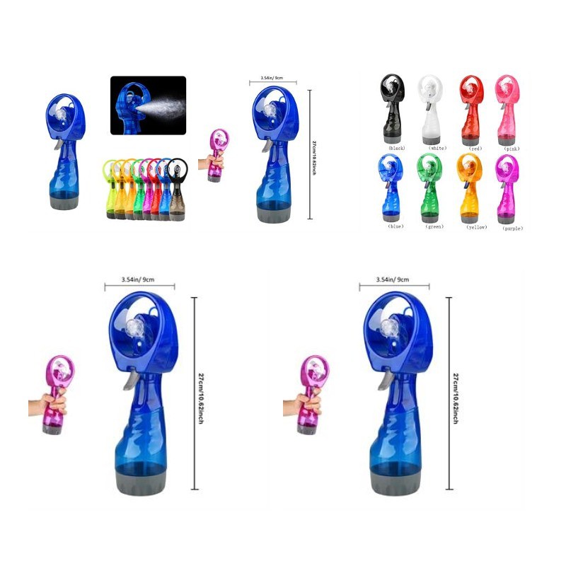 Come and see our amazing products. Open new avenues of business with this great item like this water spray mini fan! It measures 11 1/5" x 4 1/2" x 3 1/10" and can be used for getting cool misty air and handheld cooling. This features a control switch, transparent soft blades, and a separate battery compartment. This is a fun and creative giveaway idea for athletic competitions, stadiums, outdoor concerts, community festivals, and more. Put your brand ahead of your competitors! Pls confirm with us about the packing info, stock color and exact production time before placing your order.