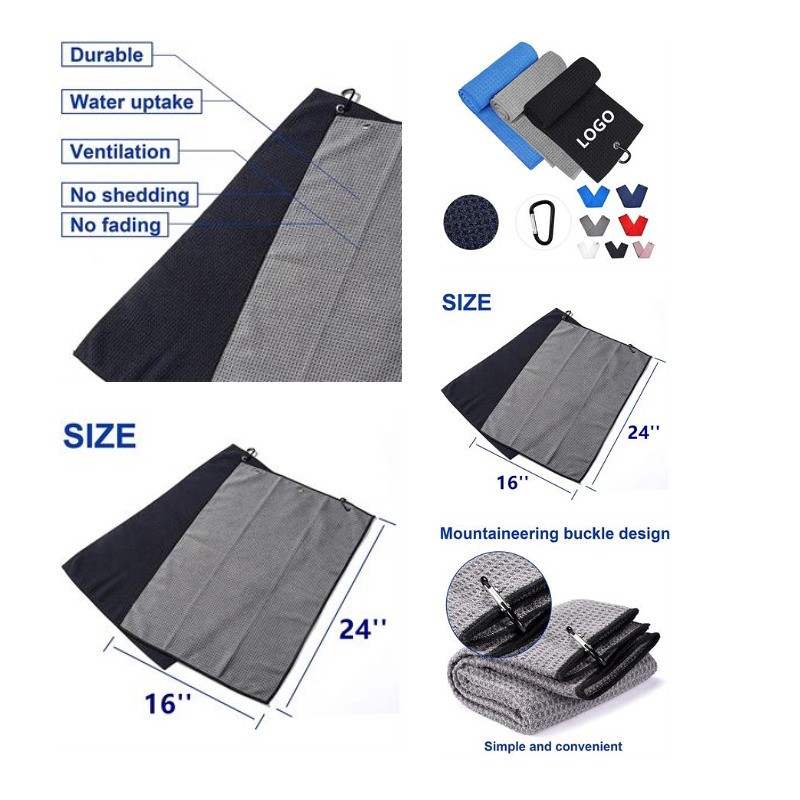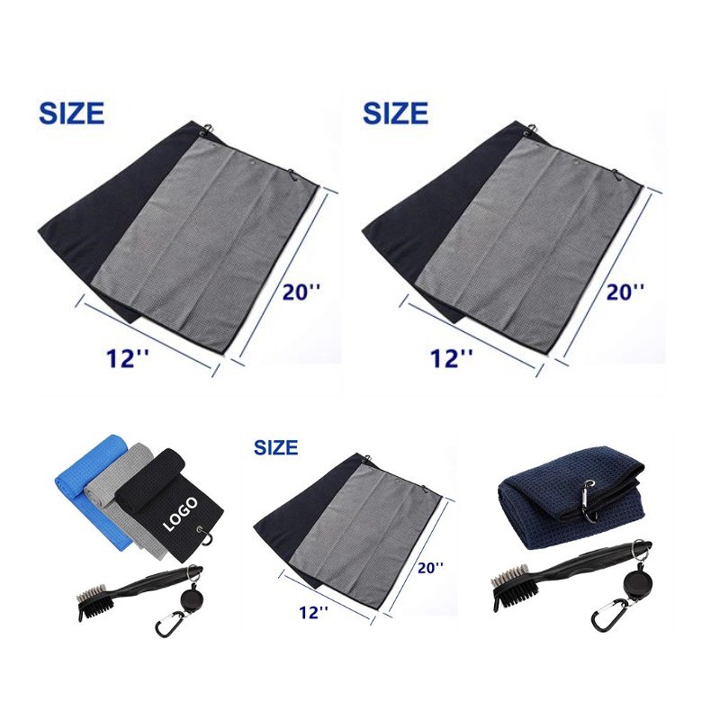 Come and see our amazing products. This golf towel is made of microfiber with waffle design. Removing dirt, mud, sand and grass better than cotton towels. Two sided brush cleans both irons and woods. Aluminum clip carabiner that conveniently attaches to your golf bag and prevents loose clip and lost towels. Customization is available. Tri fold of 12 * 20 inch using less space on the bag and easy for carrying. Microfiber Material absorbs less water than cotton, easier to wash and carry. Price is based on one single towel. Pls confirm with us about