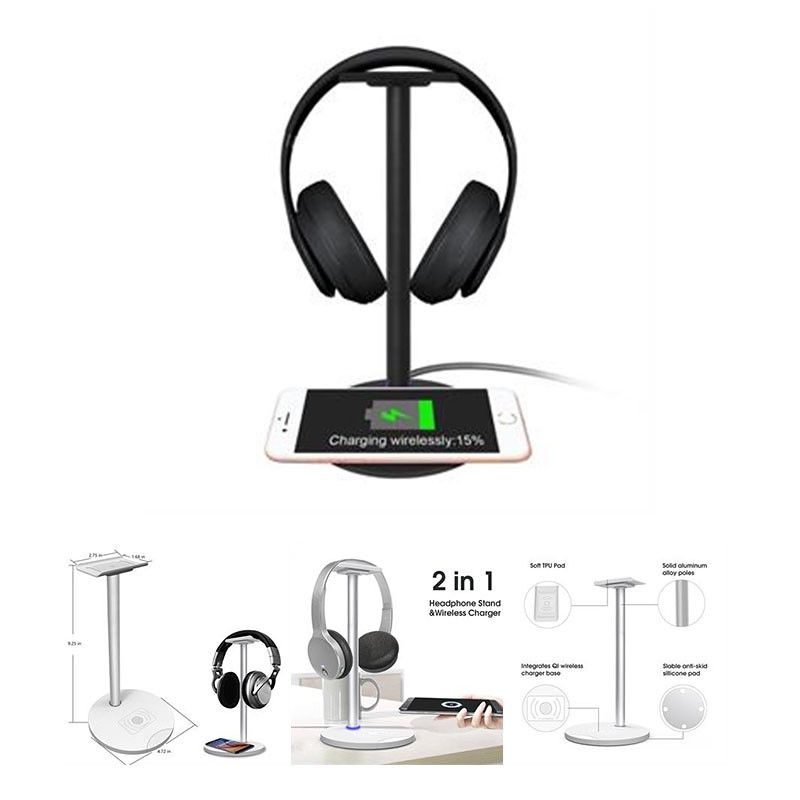 Come and see our amazing products. This headphone stand made of aluminum headset stand and TPU rubber to provide a safe and stable foundation for your headphones. The gaming headset holder about 9 1/4"" height, 4 3/4"" length,4 3/4"" width. Wireless charge up to 5W for the Samsung Galaxy &NOTE series, PHONE series and 5W standard wireless charge for All Qi-enabled phones. Fire-resistant and harden ABS outer shell for durability, no risk of wood flammable and metal leakage,build-in premium circuitry and microchip, ensure device safety.Multi-protection system shields everything from overload, short-circuits, over-current and other charging issues. It includes Headphone Stand / Wireless Charger / Integrated Power Cord. You can also choose the Fast Charger version (support QC 2.0 QC 3.0, more detail welcome to contact me. Pls confirm with us about