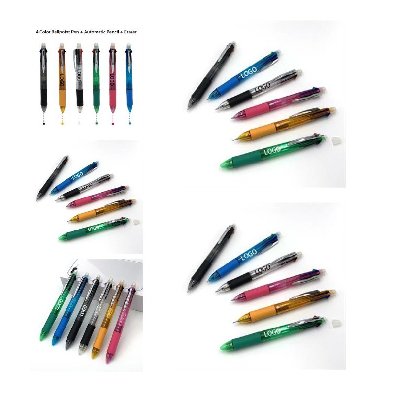 Come and Check Our Branding Solutions. This is a multifunctional ballpoint with pencil, eraser and 4colors ballpoint pen. It's a good choice to add your brand to it, whether it's a trade show or athank-you gift for the school. Pls check inventory and detailed info before placing your orders!