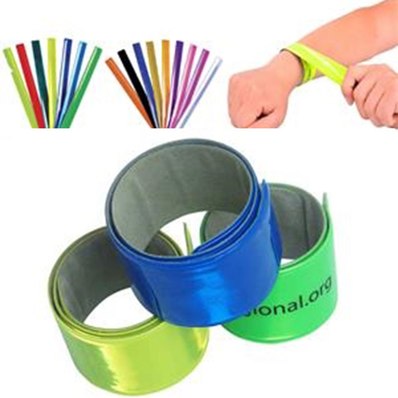 Come and Check Our Branding Solutions. Free sample is workable. Unique slap around wrist, reflective PVC tape reflecting against low-light situations, making kids, adults or athletes visible on dark morning or dark. Night reflective bracelet is easy to fit on handbags, belt or straps, tools or equipment, kids' bikes& scooters& backpacks, helping you be seen in the dark. Use reflective slap bracelet as memorable and interactive giveaway or swag bands on kids' events, summer events, concerts, sporting events, and trade show giveaways etc. Pls check inventory