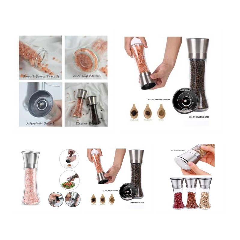 Come and see our amazing products. This salt and Pepper Mills are easy to grip and made of the highest grade non-corrosive, brushed Stainless Steel, and BPA Free glass bottle. And it is a modern, classy and user friendly addition to your kitchen. Perfect for a gourmet meal or dinner party. Great gift or party favor.Salt and Pepper Mills are easy to grip and made of the highest grade non-corrosive, brushed Stainless Steel, and BPA Free glass bottle. This salt grinder and pepper grinder set is a modern, classy and user friendly addition to your kitchen. Perfect for a gourmet meal or dinner party. Great gift or party favor. Customized design is available. Pls confirm further with us if any query about packing info, inventory status and time schedule.