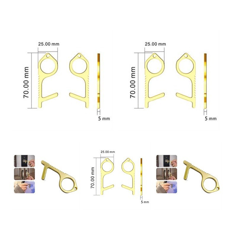 Come and Check Our Branding Solutions.Made from a solid piece of brass , the Hygiene Hand is made to help you "open doors & use shared surfaces like checkouts and ATMs". Developing an EDC to help keep citizens safe. So, by using the Hygiene Hand you not only avoid touching and contaminating yourself, but you also lower the risk of spreading germs. Hygiene Hand Uses The Hygiene Hand was initially designed to help you open doors and sign your name but it can be used for so much more. means it truly is a EDC device. Use the Hygiene Hand is to press buttons, move a chair, flush a toilet, and carry grocery bags, etc. The price includes the shipping cost to ca, QTY over 10k by ocean. Pls check inventory and detailed info before placing your orders.