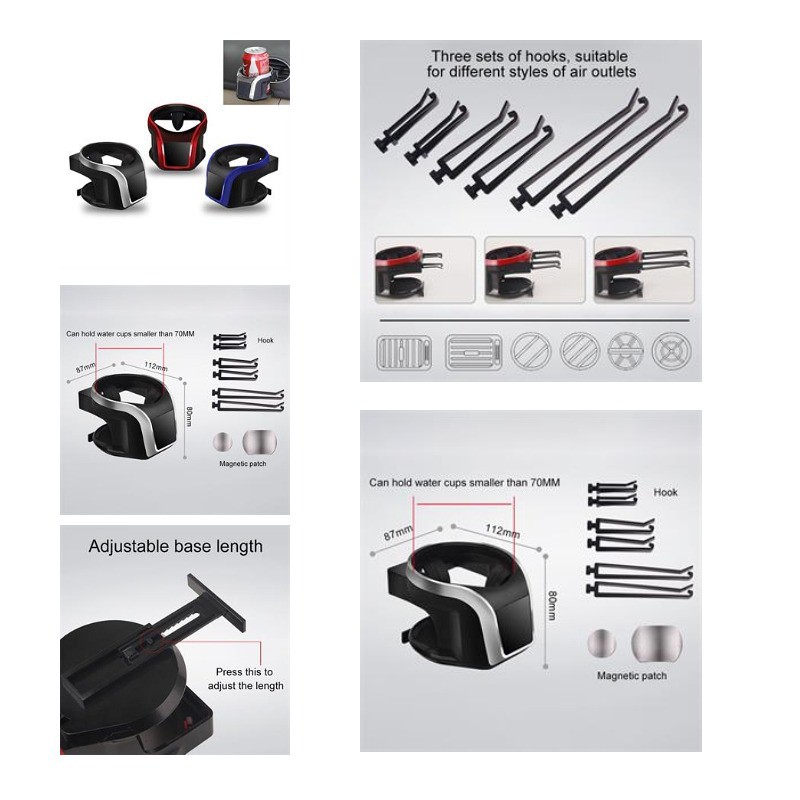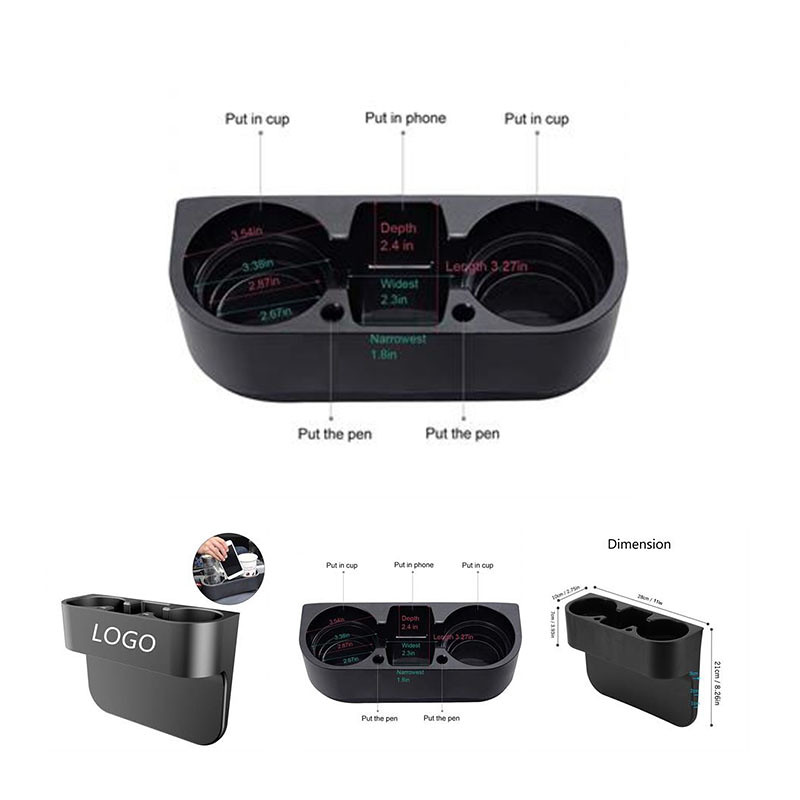 It has one main cup holder and other two cup holder with screws removable phone holder cup can rotates 360 degrees freely. The position can be shifted and adjusted according to the space of the car body, which is the most comfortable place for you to reach your drink, and save car interior space.