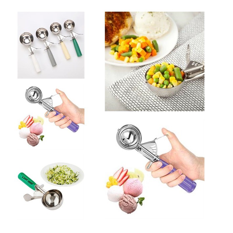 Come and see our amazing products. The ice cream scoop with trigger is made of food grade stainless steel material, durable to use. This melon baller is equipped with trigger release to easily scoop out the ice cream. With this tool help, we can easily make beautiful cookie, cupcake, sorbet or ice cream. Great baking tool for sorbet, melons, meatballs, mashed potatoes and muffins. Pls confirm with us about
