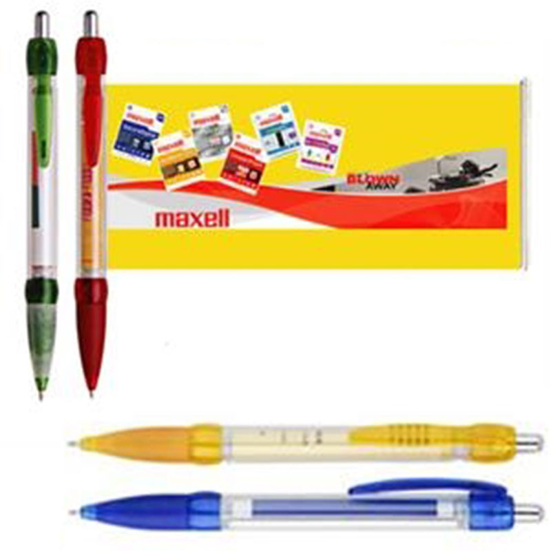 Come and see our amazing products. 2 - 3 weeks delivery for small quantity. Scroll ball pen, roll out pen, flag pen with transparent barrel, solid tip color options, blue or black ink, 4 color process on both sides. Pls confirm with us about