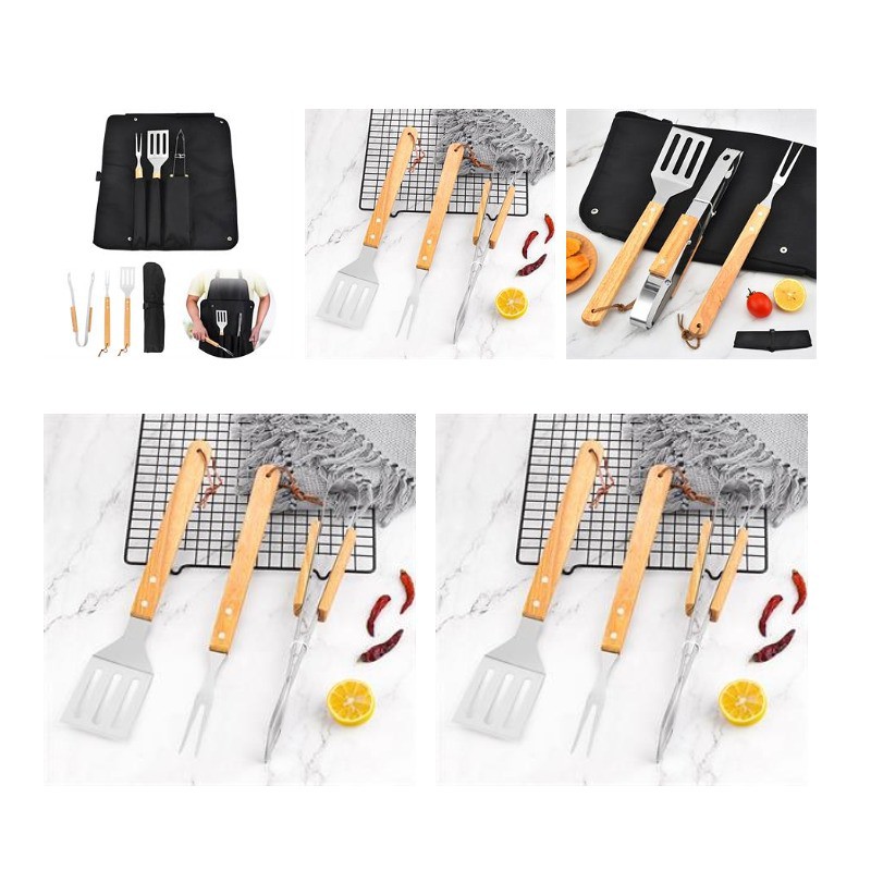 Come and see our amazing products. This is an 18 piece, stainless steel BBQ tool set with wooden handles and organized within a durable plastic case that can easily be stored. BBQ set comes with 4 skewers, 4 corn holding sets, tongs, spatula, fork, carving knife, basting brush and a wire brush with scraper for fast cleaning. Pls confirm with us about the packing info, stock color and exact production time before placing your order.