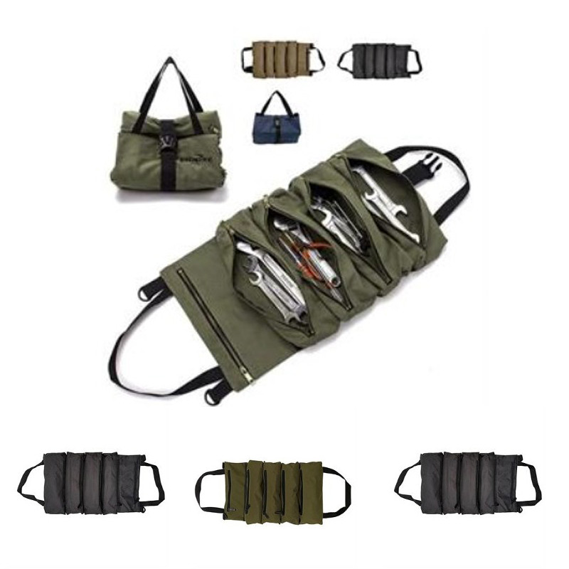 Come and see our amazing products. Tool roll bag is made of high-quality canvas material, light and durable; 5 zipper pockets, suitable for different types of tool accessories, easy to open and place.Rolled up tool storage bag, rolled up for placement and transportation, zipper and buckle can be safely closed.5 zipper pockets can store your wrenches, screwdrivers, sockets, pliers, sockets, screwdrivers or small parts, which can organize your small objects well.The popular wrench storage bag is an ideal gift for men, fathers, and boyfriends. Suitable for most cars etc.Welcome to customize your logo. Pls confirm with us about the packing info, stock color and exact production time before placing your order.