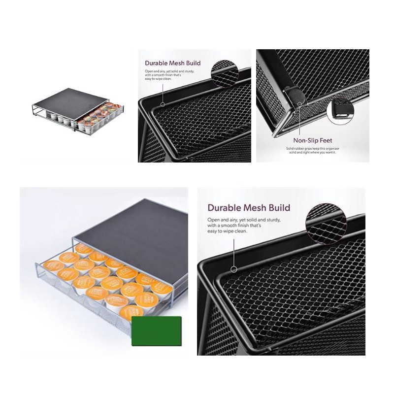 Come and see our amazing products. This metal drawer organizer stand is a perfect solution to storing and organizing your single-serve coffee pods. Shelf provides additional space for storing a coffee maker or mugs. Slide-out drawer provides easy access to coffee pods. Easy to clean and maintain. No assembly required.In addition, if you need customized logo, please contact us. Pls confirm with us about the packing info, stock color and exact production time before placing your order.
