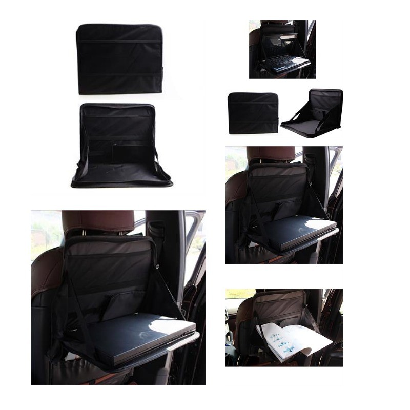 The tray, being foldable, does not take up space at all. Strap it to either the back of the driver's seat or passenger's seat and use it as a lunch tray, item organizer, laptop holder or more. When not in use, simply fold it and store it under the seat, in the trunk or any extra space you have. Pls check inventory