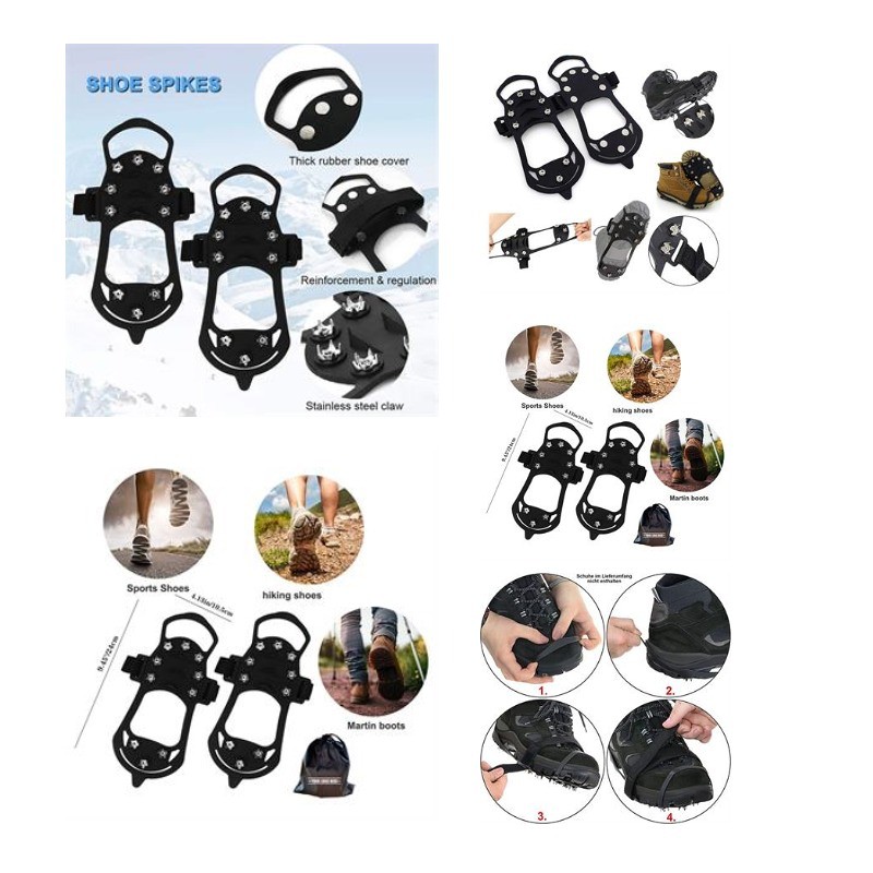 Come and see our amazing products. This 5-tooth silicone kids crampon anti-skid shoe cover is especially suitable for outdoor ice and snow walking. Made of stainless steel and silicone. Dimensions 8.27"L X 3.34"W. Suitable for mountaineering, rock climbing, snow, non-slip, outdoor sports. Light weight, natural to wear, easy to carry, convenient and simple, clean with water, wear-resistant, strong firmness, high cold resistance, and strong safety. It also comes with a storage bag that can be customized with your own personalised logo. The quantity of 5000 pieces will be shipped by sea. Pls confirm with us about the packing info, stock color and exact production time before placing your order.