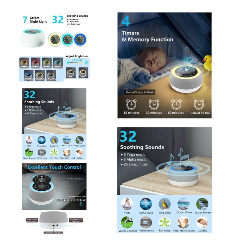 Come and see our amazing products. This smart white noise sleeper is made of silicone and eco-friendly plastic,Grow with your child for better sleep and fun for your baby: 7 night light modes, also control brightness, support touch. 24 Sleep Sounds for Different Ages: Smart Noise Cancelling, helps to eliminate noise for better sleep. This white noise sleep instrument, touch night light, memory and timer, USB or battery powered, rechargeable battery with bluetooth connection, precise sound control. You can print your company's logo on the product to better promote the brand. 3000pcs Above is the price of sea freight, if you need air freight price, please feel free to contact us. Pls confirm with us about the packing info, stock color and exact production time before placing your order.