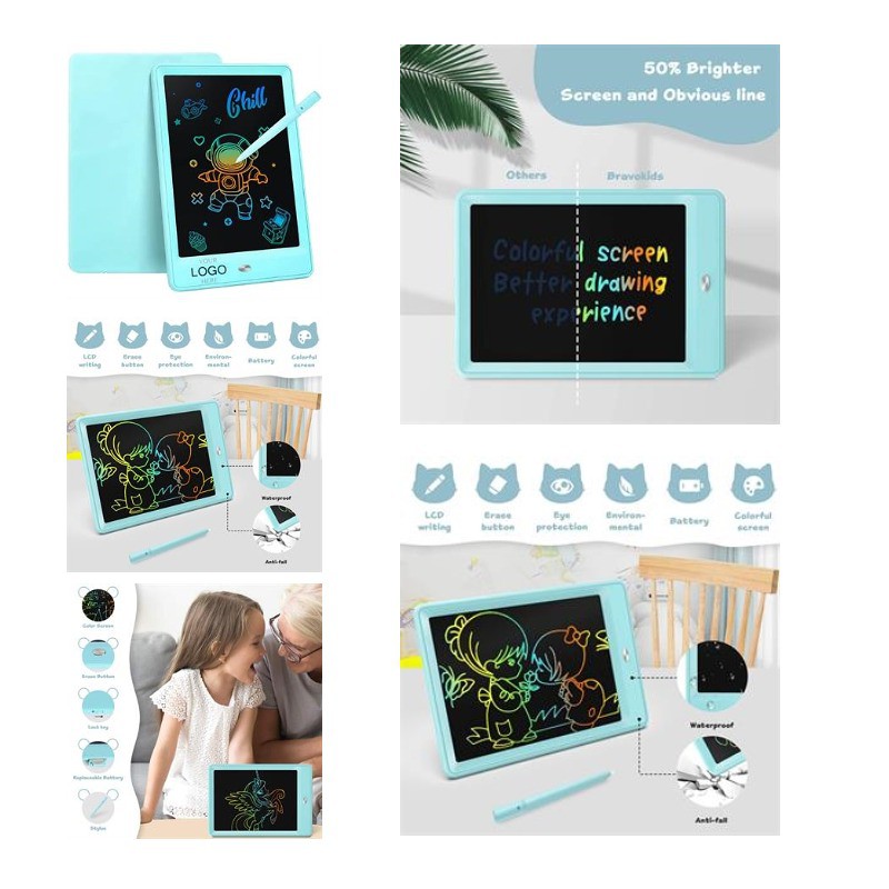 Come and see our amazing products. LCD writing board uses pressure-sensitive technology,If you use 10-inch LCD color screen,it will protect children eyes.It is suitable for children because of no radiation,no glare. Equipped with a one-key clear button to clear content in time and can be reused for about 100,000,There is a lock button on the side to prevent accidental touch,It is more convenient for children to use. LCD writing tablet can be used as a doodle board, doodle pad, kid's drawing pad, writing board, toddler drawing board etc.. You can also customize your organizational or company logo, emblem or message to create an intoxicating promotion and a great way to show your brand. Pls confirm with us about