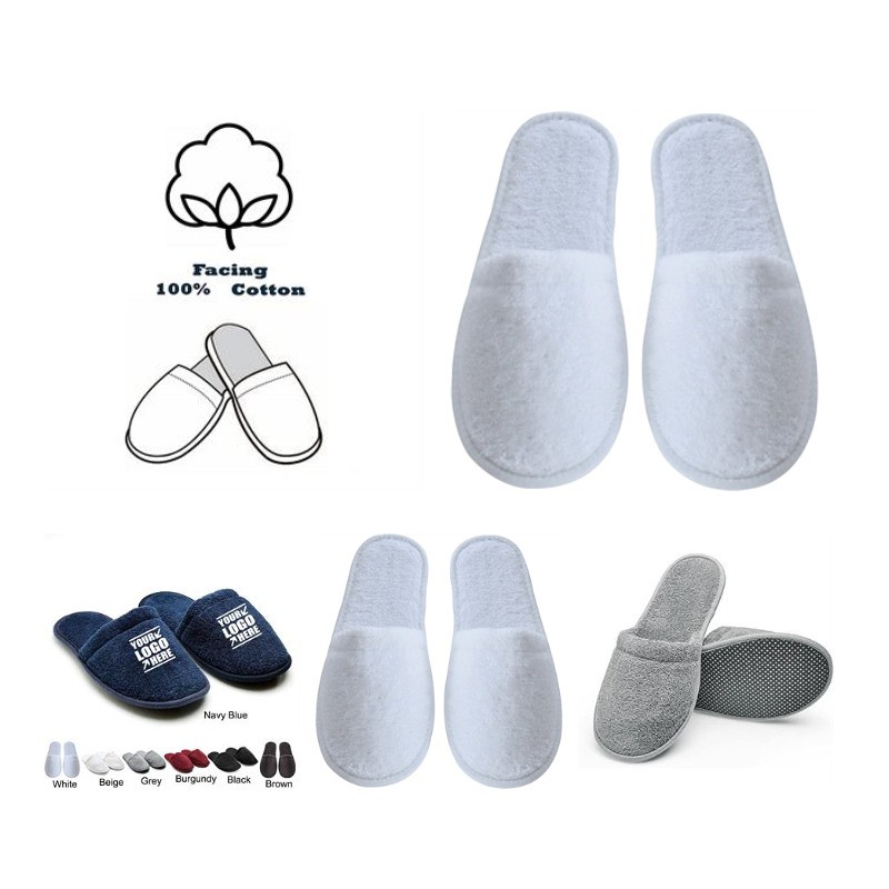 Come and see our amazing products. If your clients want comfortable slippers, these hotel slippers are exactly what they need. Measuring 11 and 3/16 inches long and 4 and 1/2 inches wide, this size is perfect for most situations, and the slippers are made of 200 GSM velour material, as well as a 2 mm foam sandwich and a 5 mm thick EVA sole. What a great giveaway for hotels, resorts, spas, etc.! Pls confirm with us about the packing info, stock color and exact production time before placing your order.