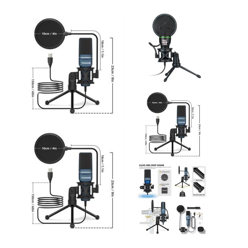Usb Microphone Condenser Recording Led Lighting