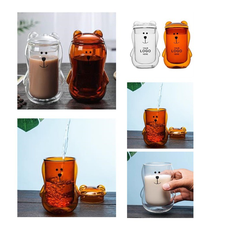 Double Bear Glass Coffee Cup With Lid 12oz