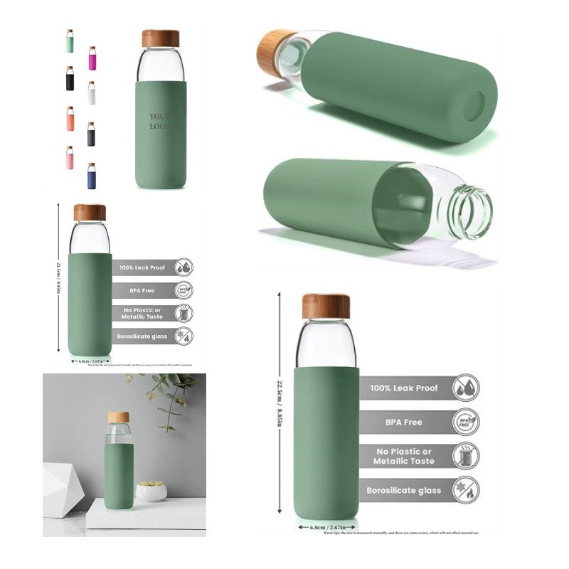 Glass Water Bottle With Bamboo Lid And Silicone Sleeve