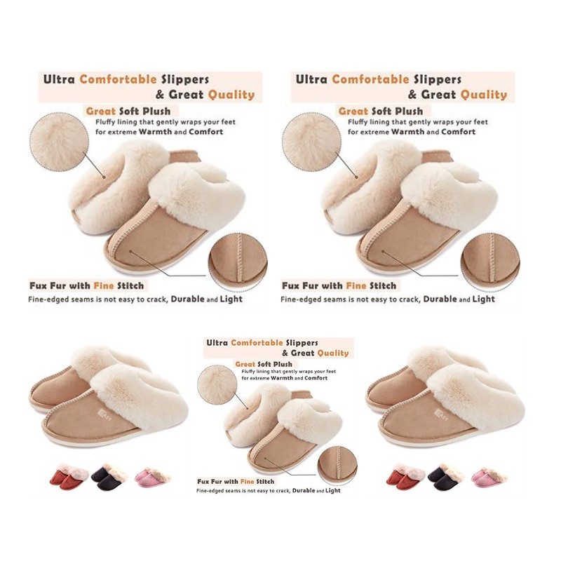 Come and Check Our Branding Solutions.You can get cozy when the temperatures goes down and snuggle up in these women's fuzzy slippers with a faux fur lining. These 11.81" x 7.87" x 2.36" suede and plastic slippers have a thick fleece construction that softly cushions your feet. The memory foam insole and non-slip bottom make for a secure fit that you'll love to wear all throughout the year. Available in assorted colors. Add your school, sports team, organizational or company logo or message to customize. Pls check inventory